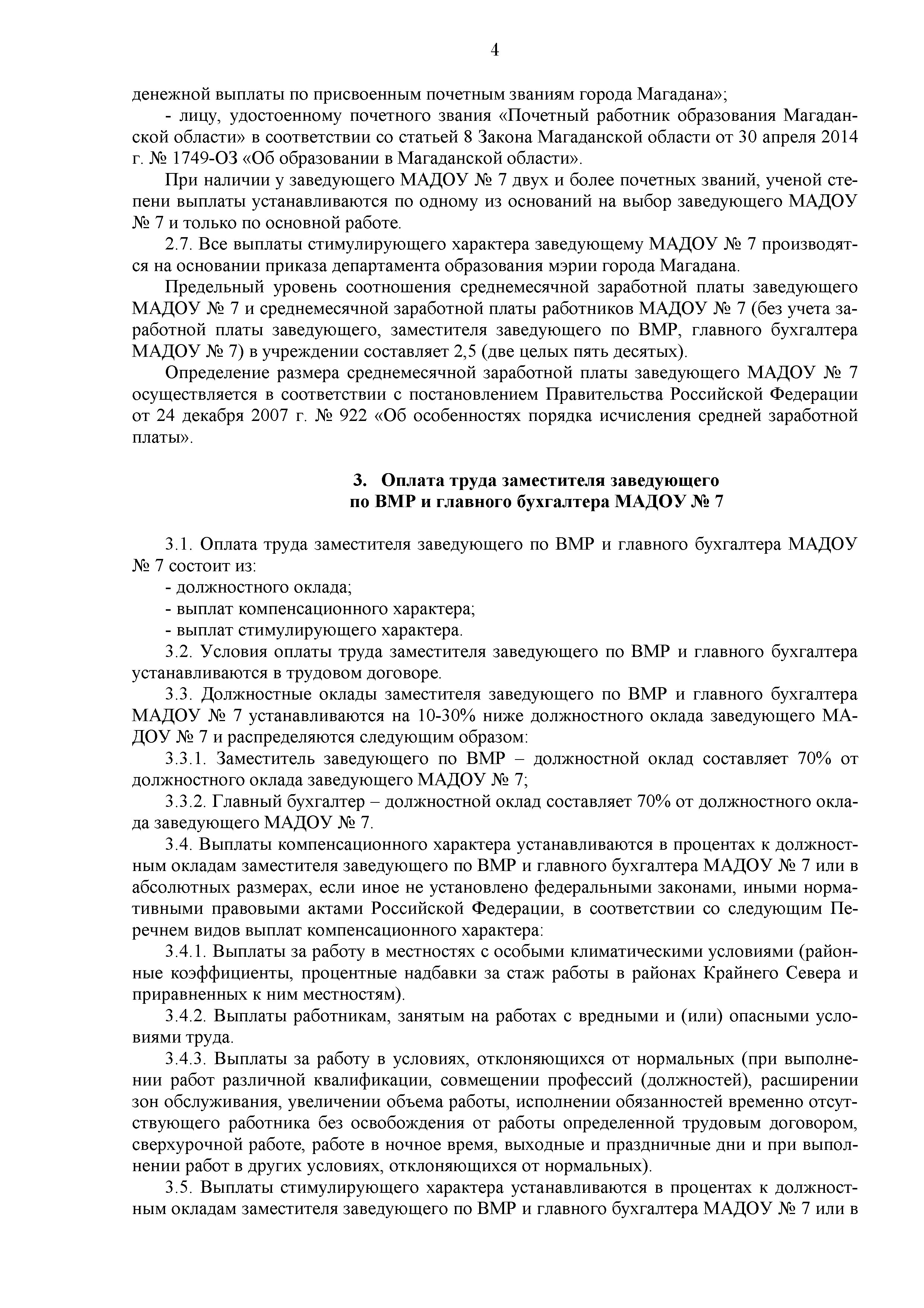 Положение об оплате труда заведующего