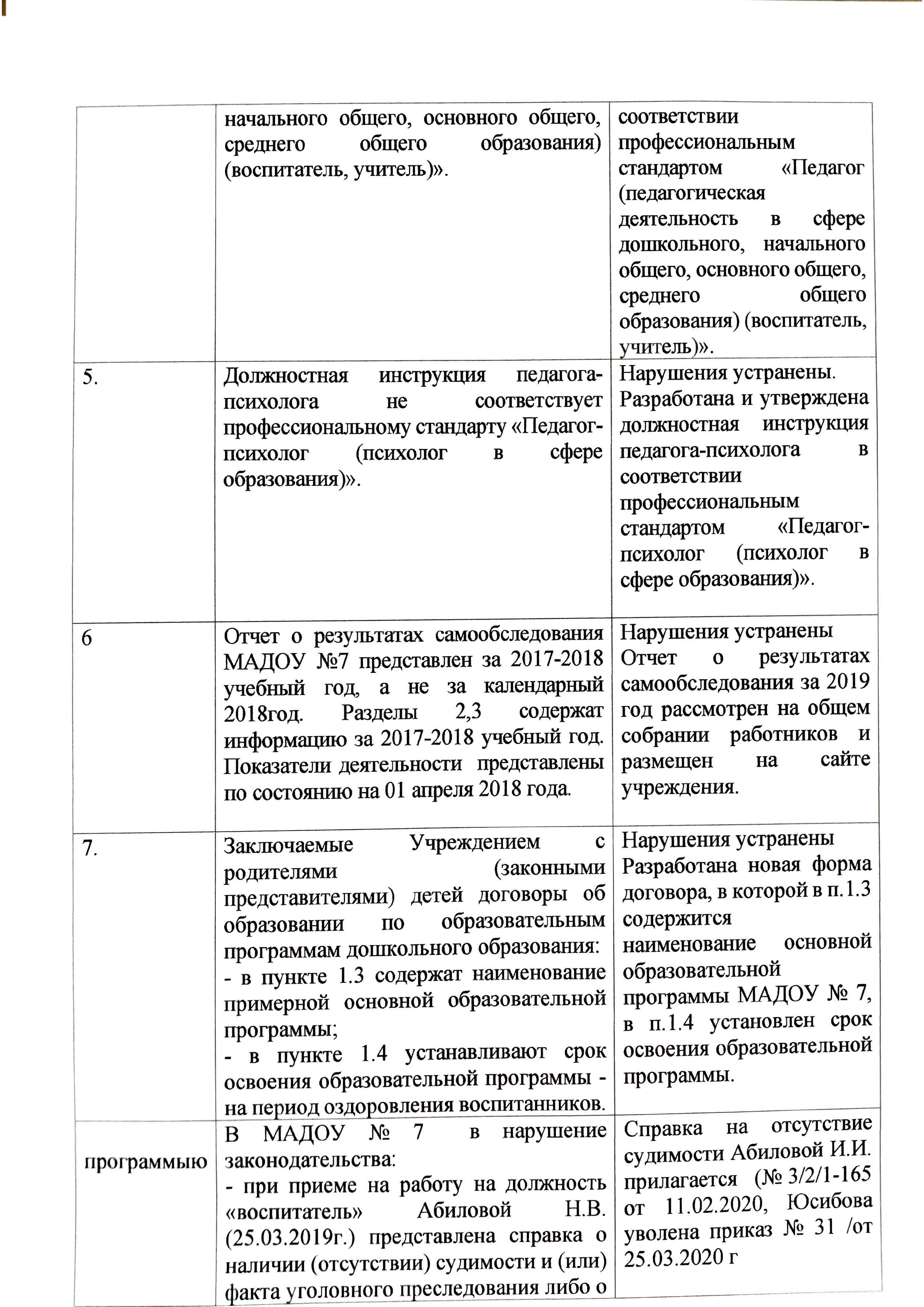 ОТЧЕТ об исполнении предписании министерства образования Магаданской области № 1 от 21.01.2020 г об устранении нарушений законодательства Российской Федерации в сфере образования